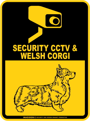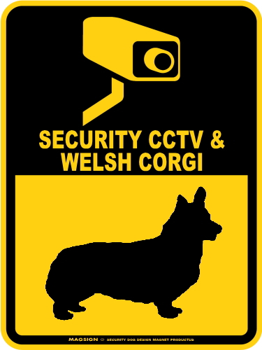 ウェルシュコーギー&防犯カメラ 監視 警戒中 英語 マグサイン(マグネット/ステッカー):SECURITY CCTV & WELSH CORGI [MAGSIGN]