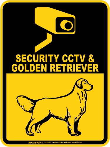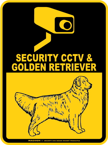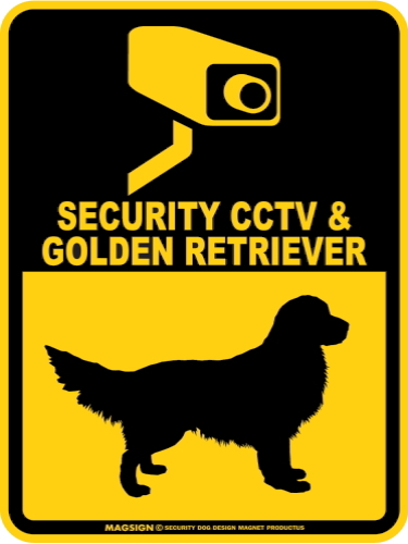 ゴールデンレトリバー&防犯カメラ 監視 警戒中 英語 マグサイン(マグネット/ステッカー):SECURITY CCTV & GOLDEN RETRIEVER [MAGSIGN]