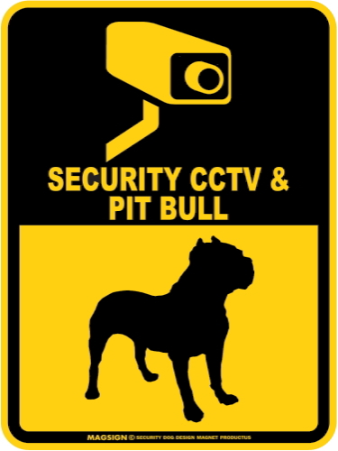 ピットブル&防犯カメラ 監視 警戒中 英語 マグサイン(マグネット/ステッカー):SECURITY CCTV & PIT BULL [MAGSIGN]