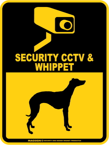 ウィペット&防犯カメラ 監視 警戒中 英語 マグサイン(マグネット/ステッカー):SECURITY CCTV & WHIPPET [MAGSIGN]