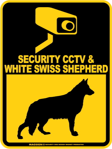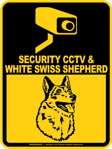 ホワイトスイスシェパード&防犯カメラ 監視 警戒中 英語 マグサイン(マグネット/ステッカー):SECURITY CCTV & WHITE SWISS SHEPHERD [MAGSIGN]