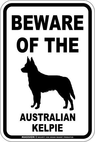[MAGSIGN] オーストラリアンケルピー 注意 英語 マグネット&ステッカー BEWARE OF THE AUSTRALIAN KELPIE 車/屋外用 日本製