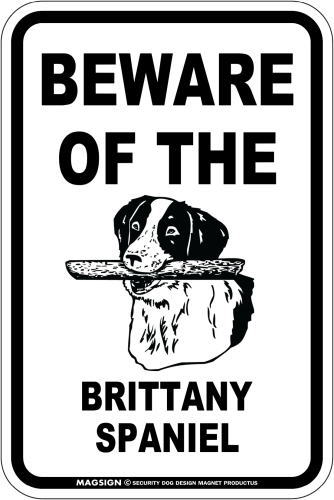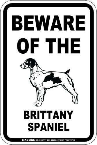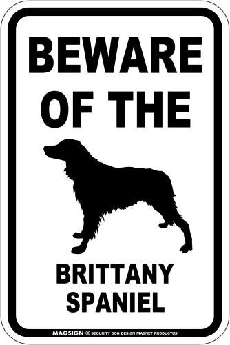[MAGSIGN] ブリタニースパニエル 注意 英語 マグネット&ステッカー BEWARE OF THE BRITTANY SPANIEL 車/屋外用 日本製