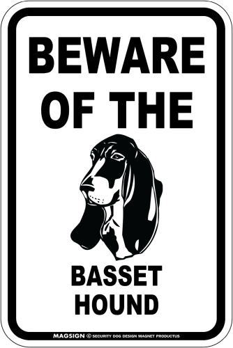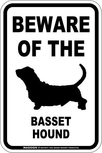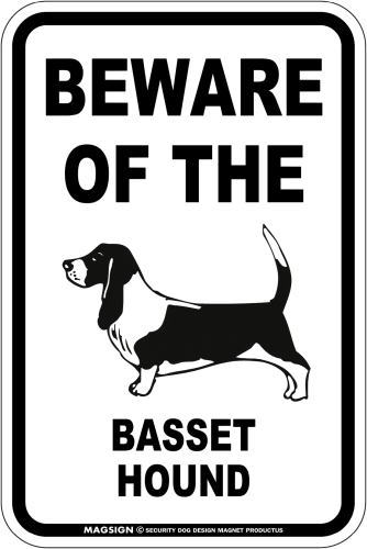 [MAGSIGN] バセットハウンド 注意 英語 マグネット&ステッカー BEWARE OF THE BASSET HOUND 車/屋外用 日本製
