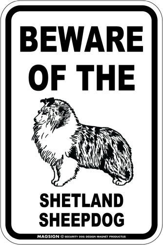 [MAGSIGN] シェットランドシープドッグ 注意 英語 マグネット&ステッカー BEWARE OF THE SHETLAND SHEEPDOG 車/屋外用 日本製