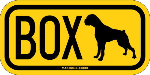 ボクサーのシルエットとイニシャル3文字(英語犬種名の頭文字や子音)をつづったマグネット&ステッカー。3つのアルファベットの並び方がまるで、救助犬・捜査犬・探知犬といった組織や団体で活躍する犬用アイディ(ID)。大きな文字やイラストに黄色と黒の配色はとても見栄えが良く、周囲への愛犬認識にわかりやすいデザインです。