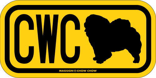 チャウチャウのシルエットとイニシャル3文字(英語犬種名の頭文字や子音)をつづったマグネット&ステッカー。3つのアルファベットの並び方がまるで、救助犬・捜査犬・探知犬といった組織や団体で活躍する犬用アイディ(ID)。大きな文字やイラストに黄色と黒の配色はとても見栄えが良く、周囲への愛犬認識にわかりやすいデザインです。