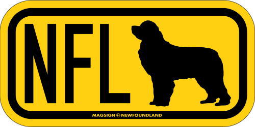 ニューファンドランドのシルエットとイニシャル3文字(英語犬種名の頭文字や子音)をつづったマグネット&ステッカー。3つのアルファベットの並び方がまるで、救助犬・捜査犬・探知犬といった組織や団体で活躍する犬用アイディ(ID)。大きな文字やイラストに黄色と黒の配色はとても見栄えが良く、周囲への愛犬認識にわかりやすいデザインです。